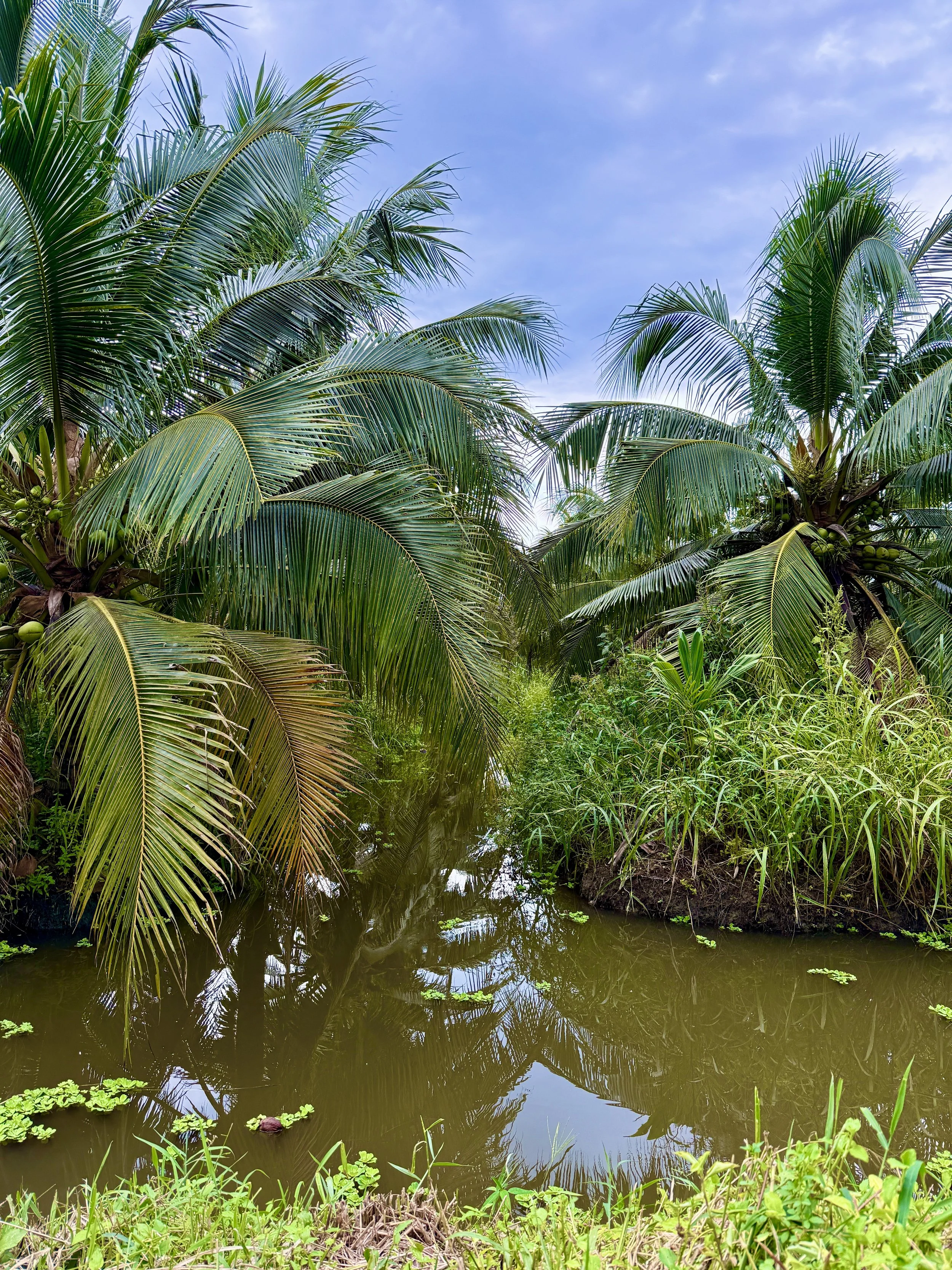 Green Dwarf coconuts are grown in the warm, wet, tidal soils of the Mekong River Delta of Southern Vietnam by largely by smallholder family farms. Other producing provinces include Trà Vinh, Tiền Giang, and Bình Định.